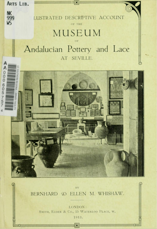 Whishaw, Bernhard, 1857-1914; Whishaw, Ellen M . Illustrated descriptive account of the Museum of Andalucian pottery and lace, antique and modern : together with notes on pre-Roman Seville and the lost city of Tharsis (1913). Smith, Elder & co. [London] 1913 Obra completa en Inglés y en varios formatos https://archive.org/details/illustrateddescr00whis